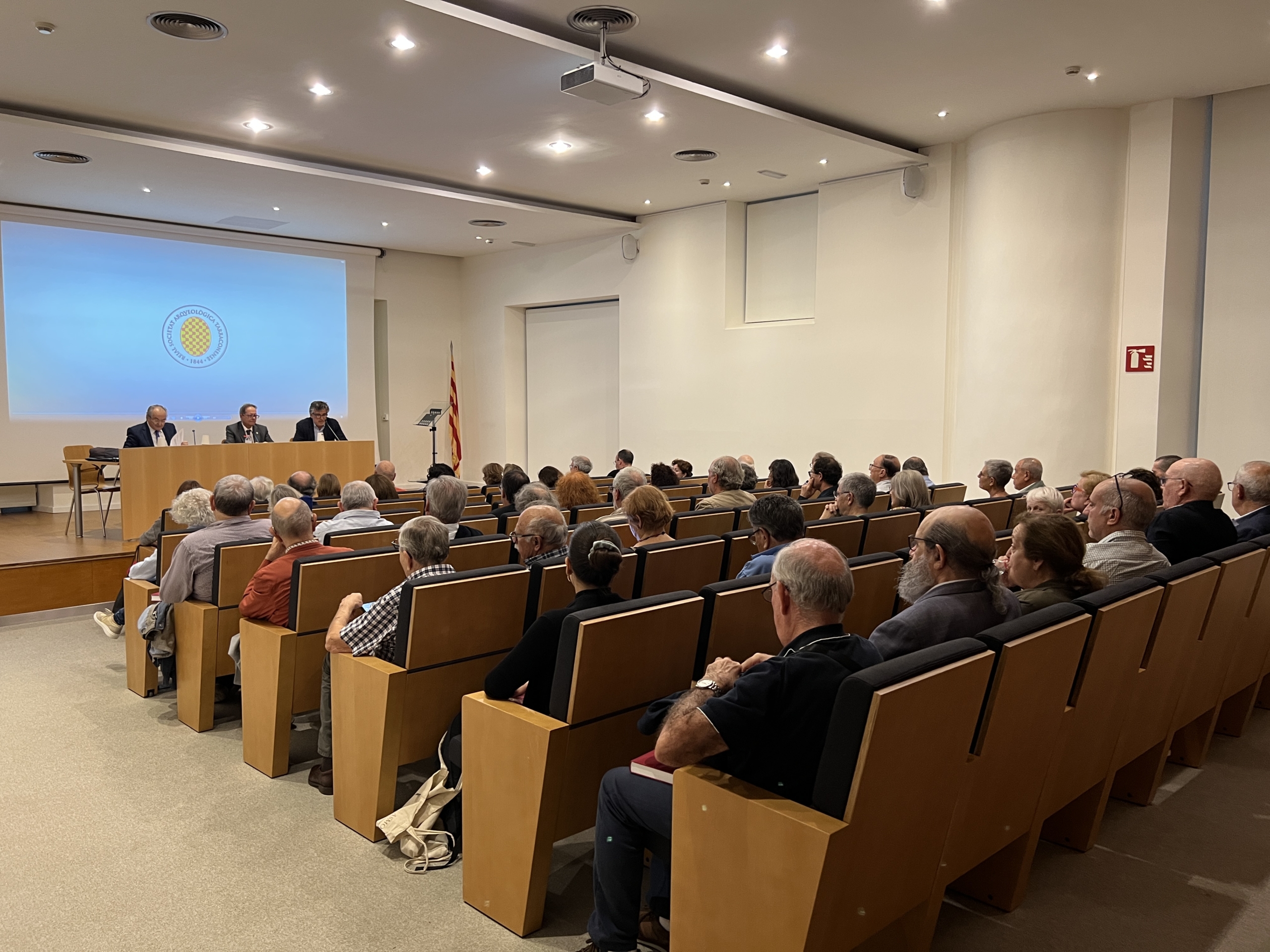 L’auditori era gairebé ple de membres de la RSAT i acompanyants. Plegats vam poder gaudir de les paraules del Dr. Sans Travé, que en va tenir per tothom, els presents i els absents.