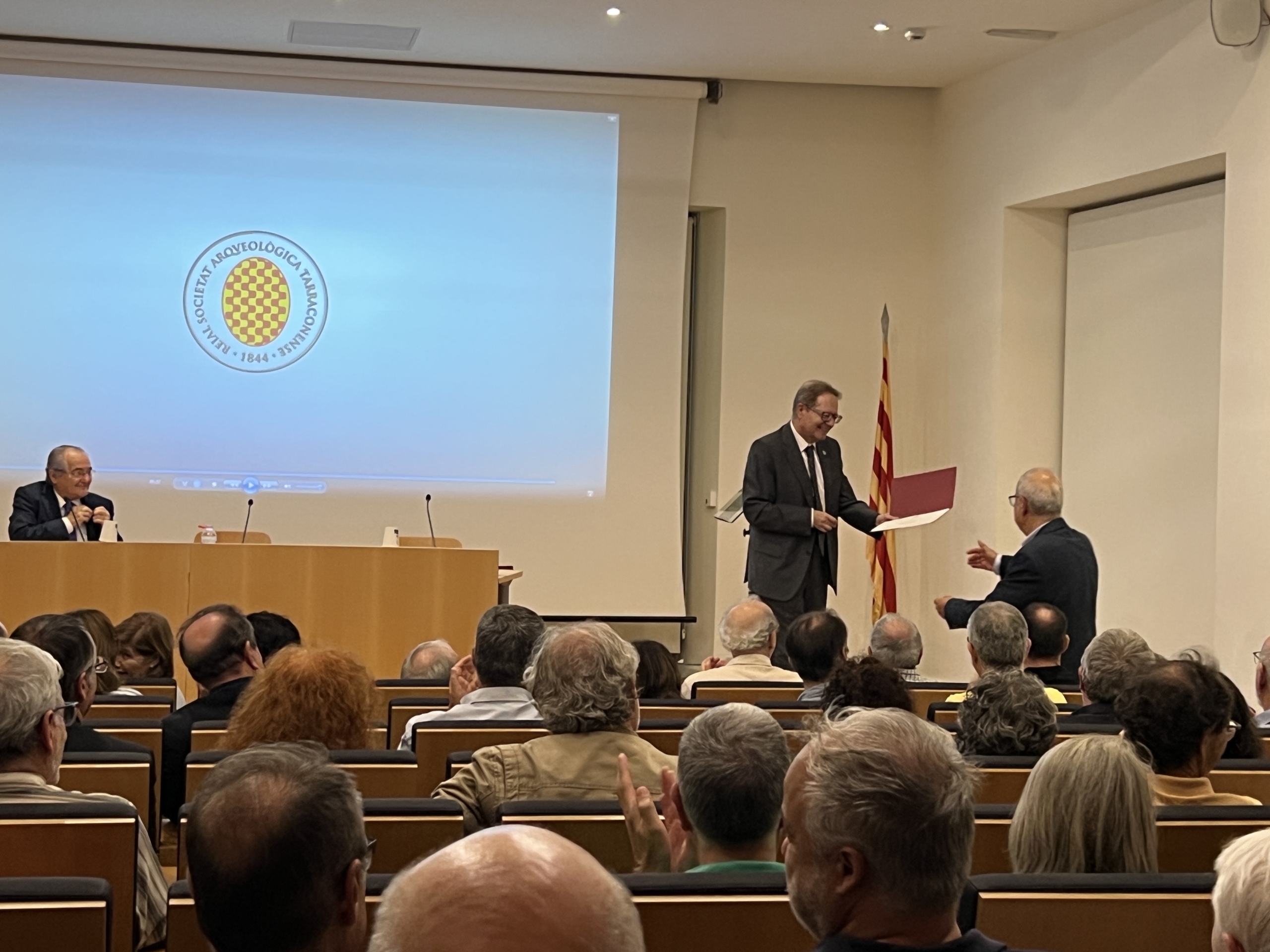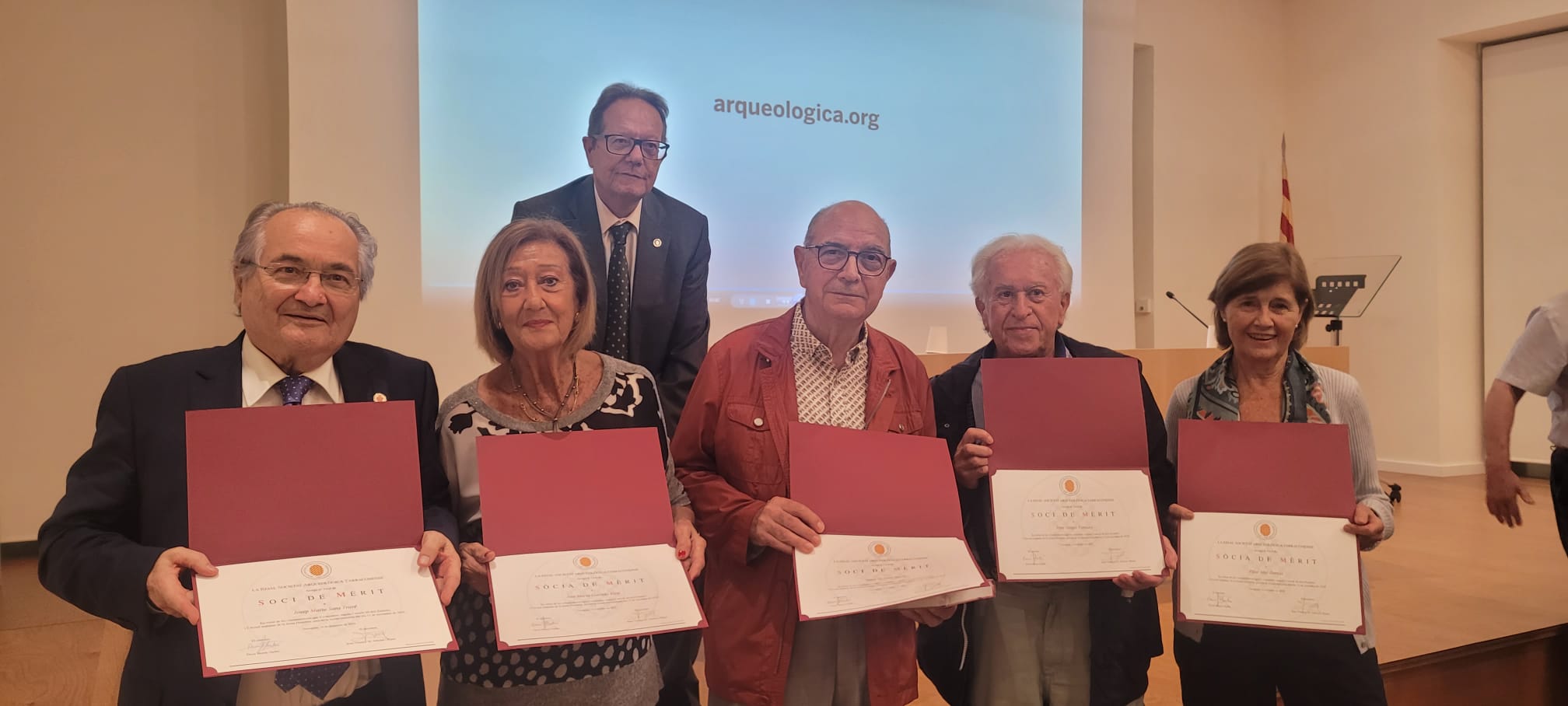 En la segona part de l’acte es va fer el lliurament dels títols als socis i sòcies de mèrit designats per l’entitat, per distingir la seva antiguitat com a membres de la RSAT. Finalment, es va presentar públicament el vídeo de presentació de l’Arqueològica, per ajudar a difondre la nostra activitat i valors.