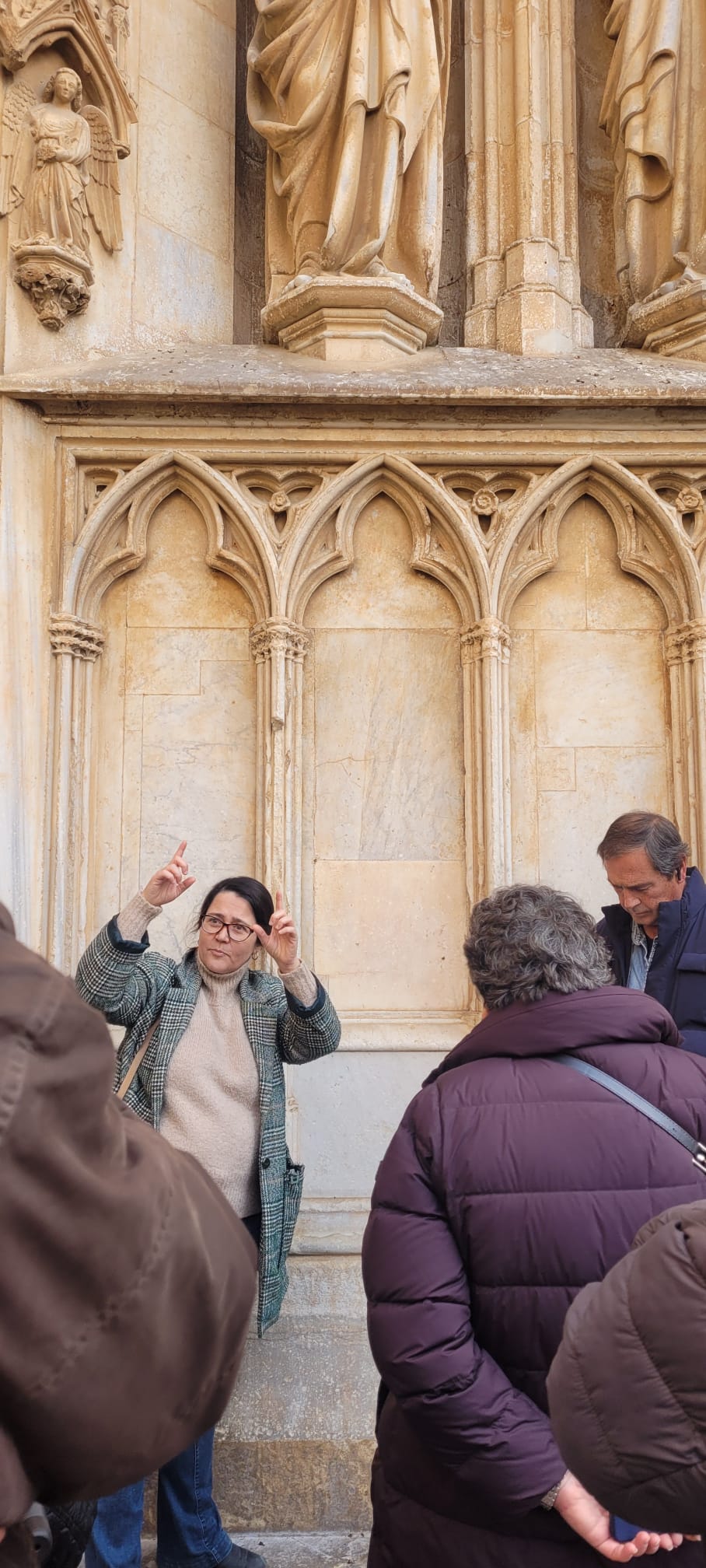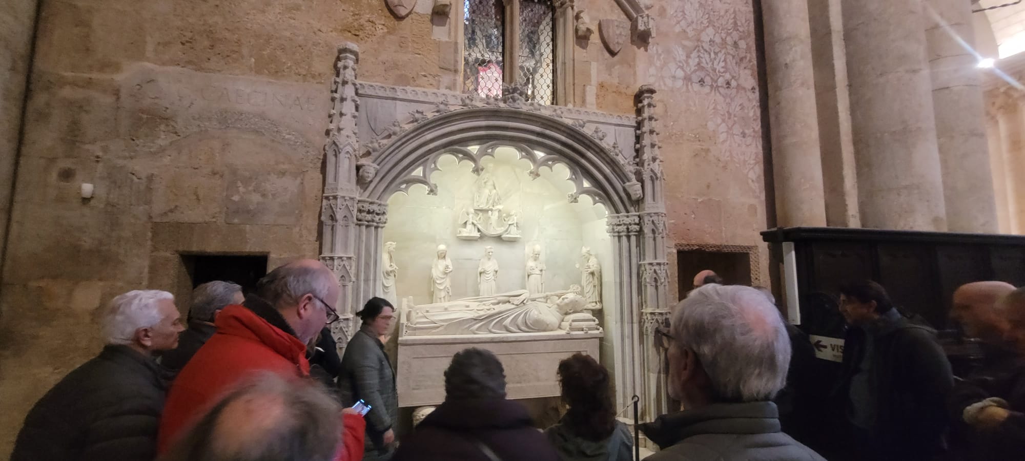 Els assistents vam poder observar la varietat de pedres locals emprades arreu: Mèdol, Savinosa, Llorito, Llisós i Santa Tecla, així com l’abundor de marbres blancs romans de Luni-Carrara i Proconès reutilitzats en època medieval, i la presència —encara que anecdòtica— d’altres pedres romanes presents en la fàbrica del temple: Giallo Antico, Pavonazzetto, granit de la Tròade, etc. En conjunt, una interessant explicació que va despertar un gran interès.